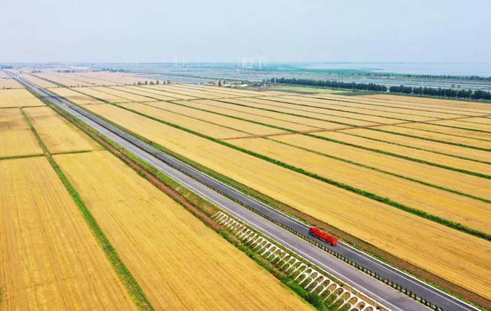 《沃野流金》 安徽農(nóng)墾華陽(yáng)河農(nóng)場(chǎng)高標(biāo)準(zhǔn)農(nóng)田種植的小麥進(jìn)入成熟期,處處風(fēng)景如畫。李龍 攝