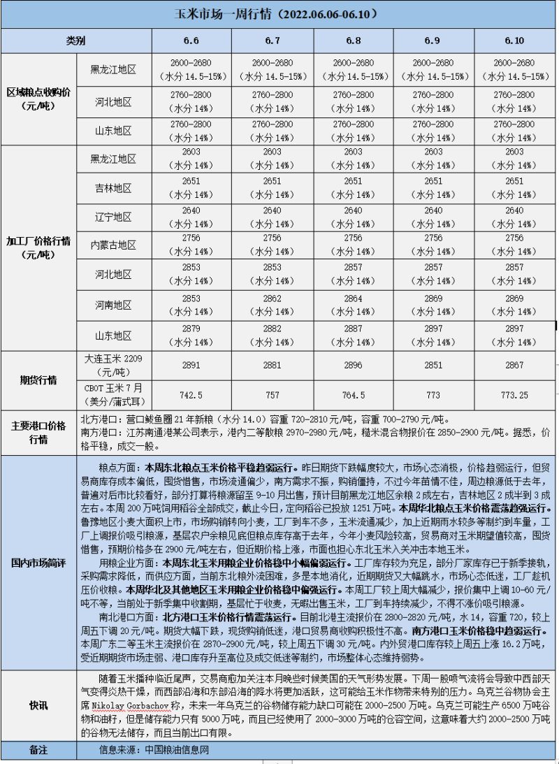 天然橡膠、大豆、玉米市場(chǎng)一周行情(2022.06.06-06.10)