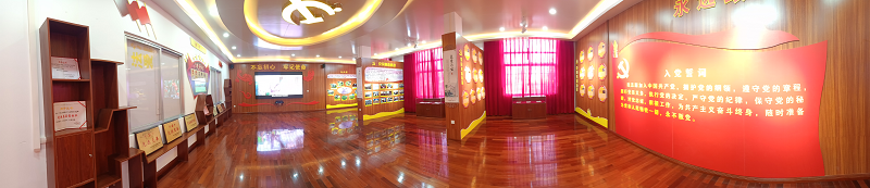 展廳建有黨旗誓詞墻、音像墻、榮譽墻和三個展室。