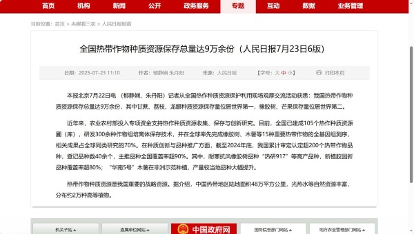 農(nóng)墾中心與海南省農(nóng)墾投資控股集團(tuán)共同主辦2025年中國國際熱作產(chǎn)業(yè)大會,人民日報、新華社、農(nóng)民日報等媒體宣傳報道。