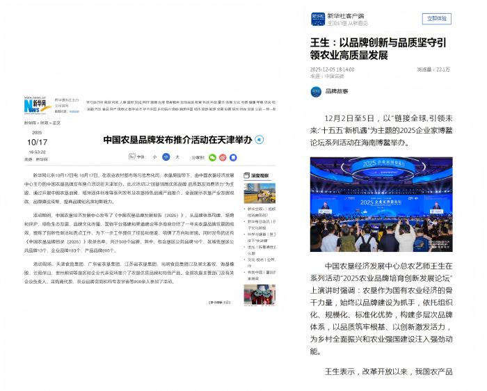 組織開展的中國農(nóng)墾品牌發(fā)布推介活動以及農(nóng)墾品牌建設(shè)經(jīng)驗被新華網(wǎng)宣傳報道。