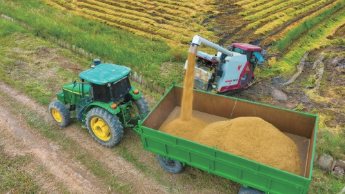 秋收搶農(nóng)時(shí),組織是關(guān)鍵。今年寧夏農(nóng)墾各農(nóng)場的水稻秋收現(xiàn)場,從收割機(jī)聯(lián)系、作業(yè)現(xiàn)場安全管理到曬場資源有序分配,再到聯(lián)系訂單收購對(duì)象和糧食經(jīng)紀(jì)人收購、運(yùn)輸,各環(huán)節(jié)堪稱“嚴(yán)絲合縫”,秋收進(jìn)行得有條不紊。稻谷銷售也在同步進(jìn)行,目前新稻谷的市場收購價(jià)在每公斤2.60元上下浮動(dòng),作為育種使用的優(yōu)質(zhì)品種如連湖農(nóng)場種植的“寧粳50號(hào)”收購價(jià)能達(dá)到每公斤3.10元。寧夏農(nóng)墾所屬各糧庫也提前開展空倉消毒、機(jī)械設(shè)備、人員培訓(xùn)等準(zhǔn)備工作,落實(shí)秋糧收購倉容11.66萬噸,收購資金2.73億元(稻谷1.5億元、玉米1.23億元),確保秋糧收購資金安全、使用及時(shí),設(shè)置秋糧收購點(diǎn)21個(gè)。目前已收購稻谷2.7萬噸。