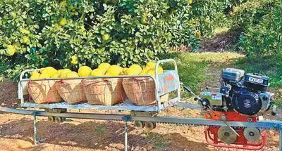 柚子下山坐“快軌”?!耙郧斑\(yùn)柚子,要靠肩挑背扛,辛苦不說,費(fèi)時(shí)費(fèi)工,現(xiàn)在果園里安裝了單軌山地果園運(yùn)輸機(jī),效率翻了好幾倍。”雁洋鎮(zhèn)南福村柚農(nóng)黃裕亮輕點(diǎn)按鈕,載著700多斤柚子的運(yùn)輸機(jī)穩(wěn)穩(wěn)啟動(dòng),沿著軌道往前奔去?!斑\(yùn)700多斤柚子,以往要8個(gè)人背,半個(gè)多小時(shí)才能到山下。用運(yùn)輸機(jī)的話,只要10分鐘?!秉S裕亮感嘆。