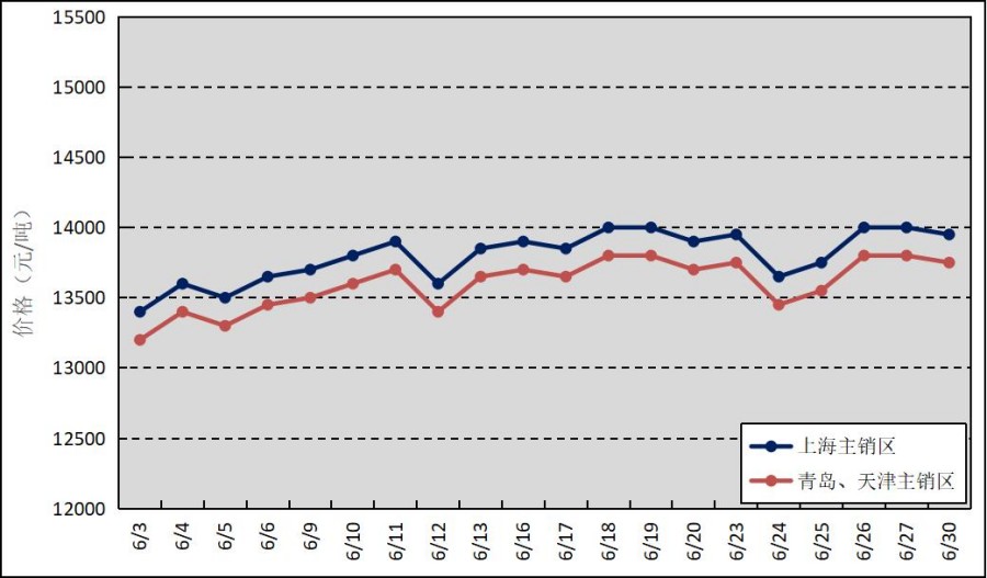 國(guó)內(nèi)主銷(xiāo)區(qū):6月,國(guó)產(chǎn)全乳標(biāo)準(zhǔn)膠上海市場(chǎng)平均價(jià)格13798元/噸,環(huán)比下跌776元/噸,最高價(jià)為14000元/噸,最低價(jià)為13400元/噸;青島市場(chǎng)和天津市場(chǎng)平均價(jià)格13598元/噸,環(huán)比下跌760元/噸,最高價(jià)為13800元/噸,最低價(jià)為13200元/噸。