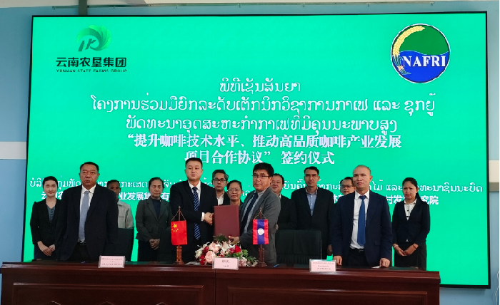 11月13日,萬象農(nóng)發(fā)集團(tuán)與老撾農(nóng)林部農(nóng)科院在老撾首都萬象舉行《關(guān)于提升老撾咖啡技術(shù)水平、推動高品質(zhì)咖啡產(chǎn)業(yè)發(fā)展項(xiàng)目合作協(xié)議》的簽約儀式,老撾農(nóng)林部農(nóng)科院代理院長培瑪尼森·尚賽亞傘與萬象農(nóng)發(fā)集團(tuán)相關(guān)負(fù)責(zé)人代表雙方簽約,農(nóng)林部副部長占塔空・博拉帕博士出席簽約儀式。