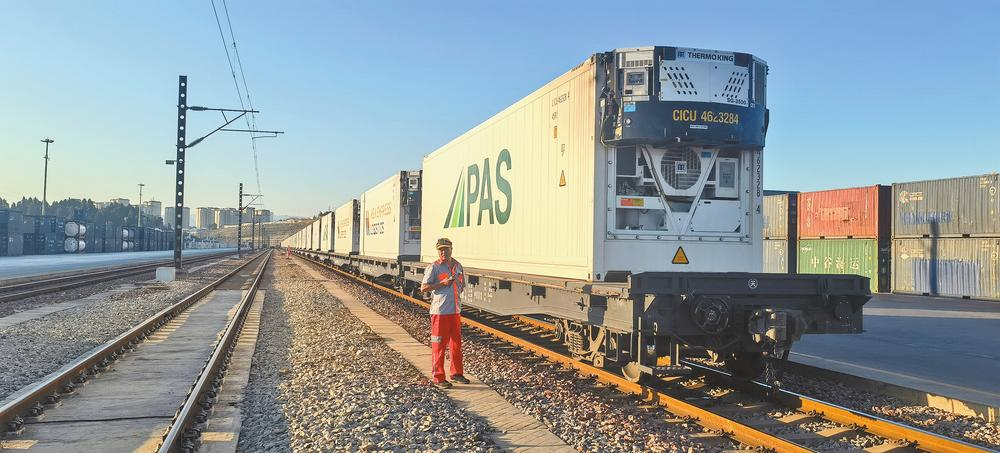 滿載泰國榴蓮的中老鐵路“瀾湄快線”班列抵達(dá)中鐵聯(lián)集昆明中心站。 本報(bào)記者 胡曉蓉 攝