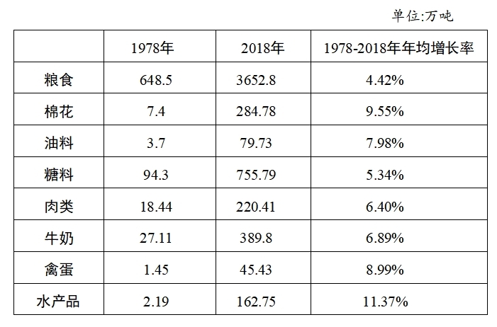表1:1978-2018年農(nóng)墾糧食和主要農(nóng)產(chǎn)品產(chǎn)量和年均增長(zhǎng)率