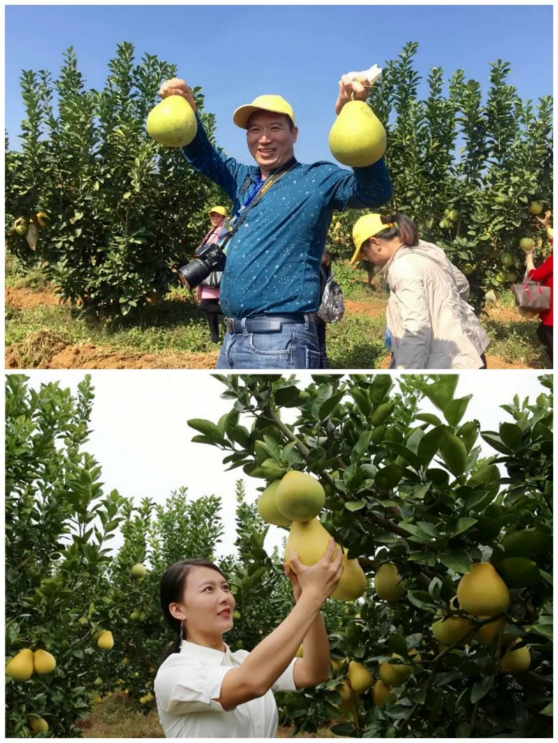 游客在金沙柚采摘園體驗自主采摘樂趣