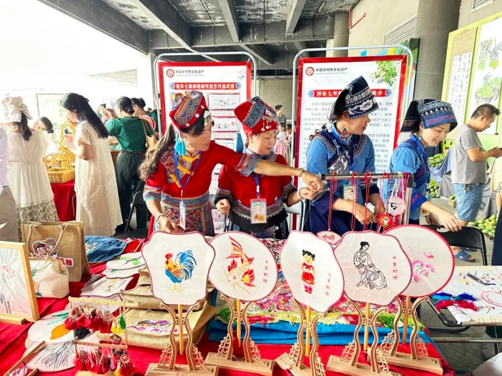 活動(dòng)中,百色12個(gè)縣(市、區(qū))農(nóng)特產(chǎn)品和文創(chuàng)產(chǎn)品,以及來(lái)自國(guó)家芒果種植資源圃的“熱品4號(hào)”“桂熱芒10號(hào)”“泰國(guó)金白花”等百余種芒果新品種(品系)集中亮相?!懊⒐N質(zhì)資源太神奇了,單單是種皮就有這么多顏色!”“芒果蘸辣椒面我還是第一次嘗試!”“甜小芒這個(gè)IP既有廣西的民族特色,又有農(nóng)業(yè)特色!”每個(gè)展位前都擠滿了觀眾,大家嘗味道、問價(jià)格,熱鬧非凡。