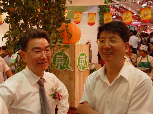 (光明集團(tuán)總裁曹樹(shù)民和光明集團(tuán)董事、上海煙糖集團(tuán)公司董事長(zhǎng)吳順寶參觀光明食品節(jié))