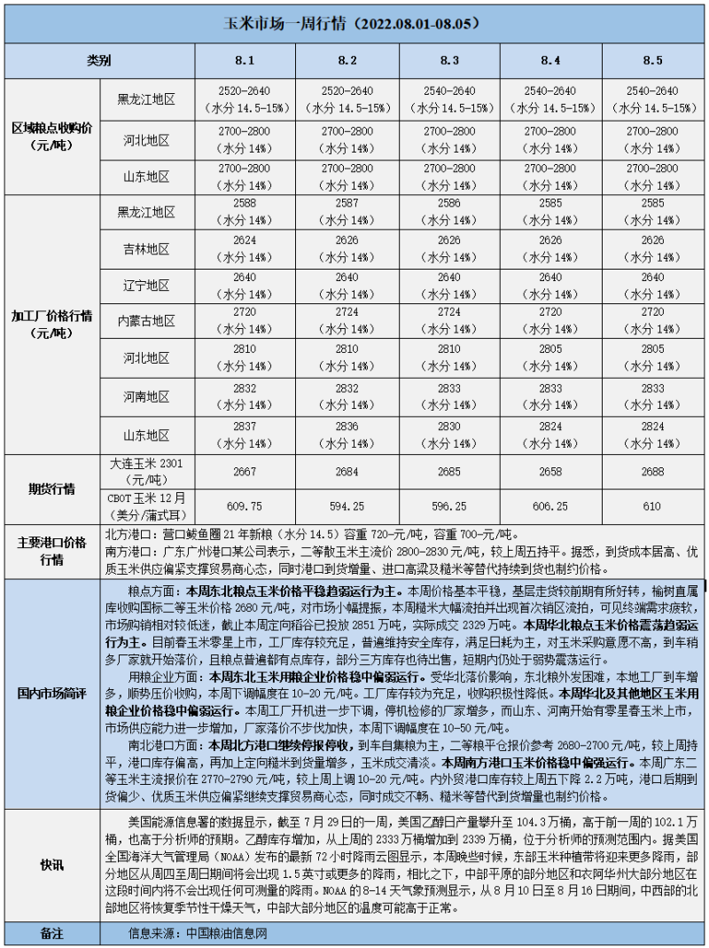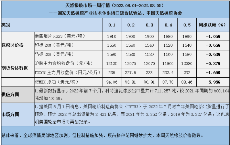 天然橡膠、大豆、玉米市場一周行情(2022.08.01-08.05)