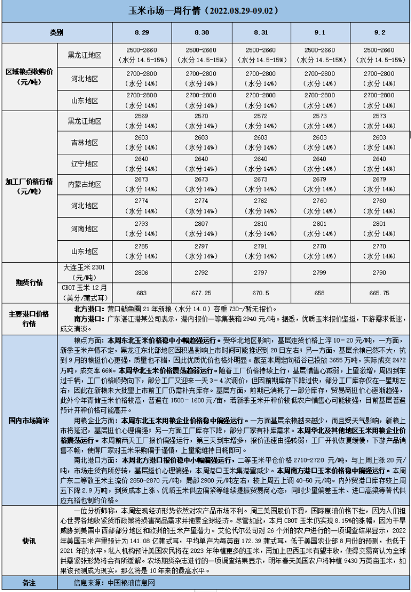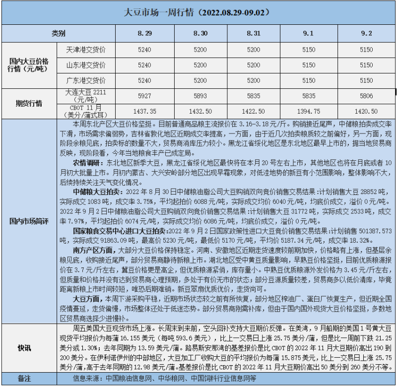 天然橡膠、大豆、玉米市場一周行情(2022.08.29-09.02)