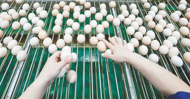3月30日,在澄邁縣福山鎮(zhèn)的海南農(nóng)墾300萬只蛋雞全產(chǎn)業(yè)鏈(一期)項目的產(chǎn)蛋雞場,一按按鈕,雞舍蛋槽中一個個雞蛋就會通過傳輸帶收集送至車間。在車間里,隨著傳送帶自動運轉(zhuǎn),一顆顆新鮮的雞蛋經(jīng)過初篩、清洗、烘干、檢測、消毒等環(huán)節(jié),被自動化分級。