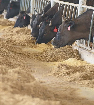 3月16日,海南農(nóng)墾草畜科技股份有限公司旗下肉牛繁育示范基地,牛在吃飼料。海南日報記者 袁琛 攝