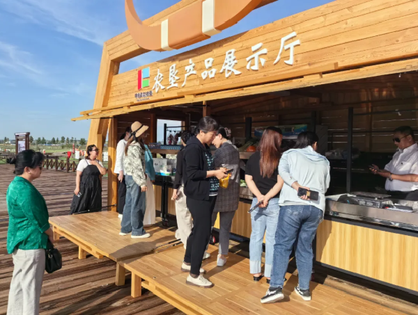 “你們有哪些特色產(chǎn)品?”“我們加個微信,然后給您發(fā)詳細(xì)的產(chǎn)品信息。”在謝爾塔拉農(nóng)牧場有限公司南入口,過往車輛、行人絡(luò)繹不絕,紛紛駐足詢問、了解農(nóng)墾產(chǎn)品展示廳內(nèi)琳瑯滿目的商品。近日,謝爾塔拉農(nóng)牧場有限公司農(nóng)墾產(chǎn)品展示廳投入運營,吸引了大量游客和市民前來參觀選購。