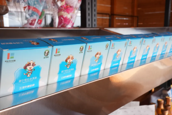 展示廳內(nèi),三河牛酸奶、奶酪、鮮奶磚,黃瓜、南瓜、茄子以及各類文創(chuàng)產(chǎn)品整齊劃一地陳列在展示架上,從新鮮的蔬菜水果、優(yōu)質(zhì)的三河牛乳制品,到獨特的文創(chuàng)產(chǎn)品,無不體現(xiàn)了謝爾塔拉農(nóng)牧場公司對品質(zhì)的嚴(yán)格把控和對消費者的用心服務(wù)。