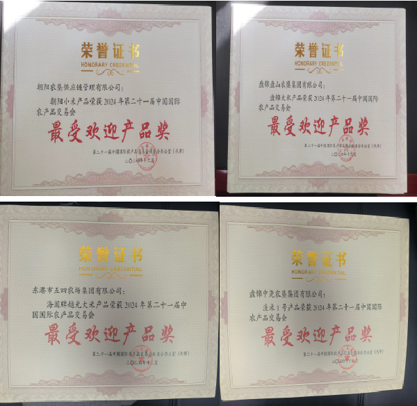 在廣州舉辦的第二十一屆中國(guó)國(guó)際農(nóng)交會(huì),遼寧農(nóng)墾精心組織遴選代表農(nóng)墾產(chǎn)業(yè)發(fā)展優(yōu)勢(shì)、彰顯遼寧農(nóng)業(yè)品牌價(jià)值的7家農(nóng)墾企業(yè)分別在遼寧展團(tuán)和中國(guó)農(nóng)墾展團(tuán)進(jìn)行參展。展會(huì)期間各參展企業(yè)人氣訂單兩旺,銷售和簽約額均再創(chuàng)新高。進(jìn)一步擦亮了遼寧“土特產(chǎn)”品牌名片,有效塑造了農(nóng)墾國(guó)家隊(duì)形象,提升了農(nóng)墾品牌影響力。中國(guó)農(nóng)墾經(jīng)濟(jì)發(fā)展中心發(fā)來感謝信對(duì)遼寧農(nóng)墾在中國(guó)國(guó)際農(nóng)交會(huì)期間的籌備和組織工作予以肯定。根據(jù)組委會(huì)評(píng)選要求,最終確定東港市五四農(nóng)場(chǎng)集團(tuán)有限公司的海闐牌越光大米、朝陽農(nóng)墾供應(yīng)鏈有限公司的朝陽小米、盤錦盤山農(nóng)墾集團(tuán)有限公司的盤錦大米、盤錦中堯農(nóng)墾集團(tuán)有限公司的洼米1號(hào)產(chǎn)品榮獲第二十一屆中國(guó)國(guó)際農(nóng)產(chǎn)品交易會(huì)最受歡迎產(chǎn)品獎(jiǎng)。