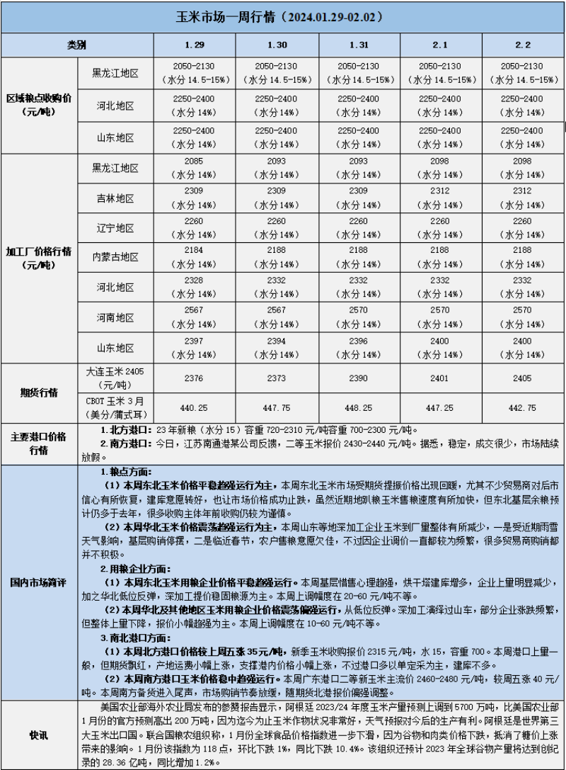 天然橡膠、大豆、玉米市場(chǎng)一周行情(2024.01.29-02.02)