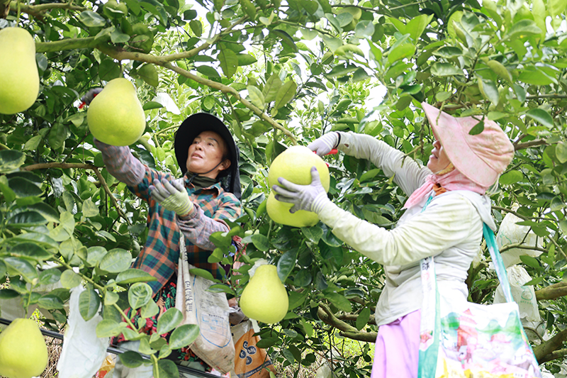 村民正在采摘柚子。勐海縣融媒體中心供圖