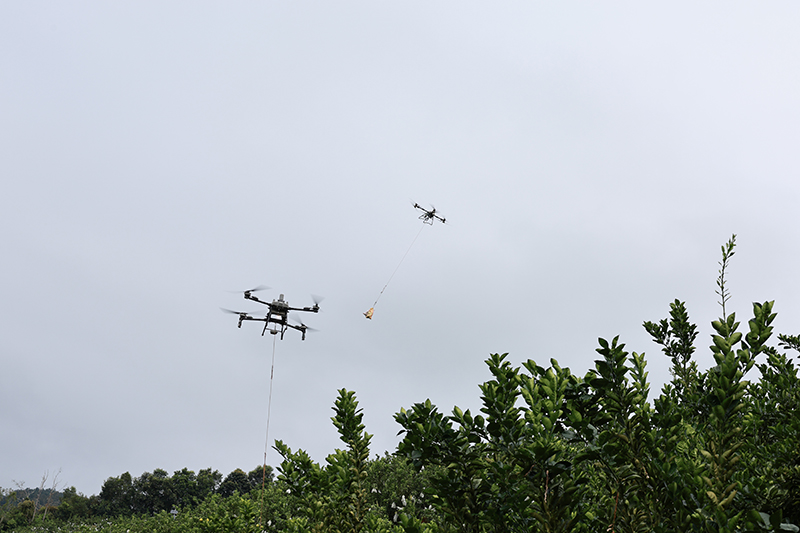 兩架無人機同時吊運。勐海縣融媒體中心供圖