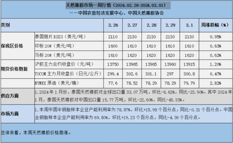 天然橡膠、大豆、玉米市場(chǎng)一周行情(2024.02.26-03.01)